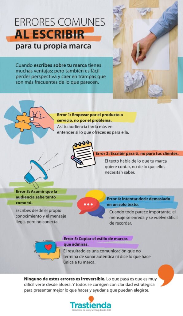 Pero no te sientas sola(o), esto le ocurre a muchísimas marcas, y no es un problema de redacción. Es un problema de perspectiva. Y en ese camino aparecen errores más comunes de lo que crees.